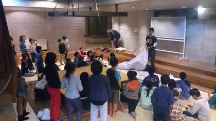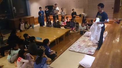 明日の朝の片付けは大変です。やり方を補助員さんに教えてもらっています。しっかり聞いているかな。明日結果がでます。