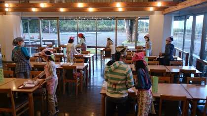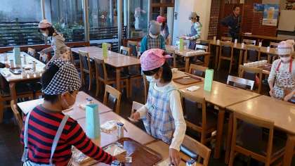 疲れた体を励まして。食事係の子どもたちが、がんばってます。