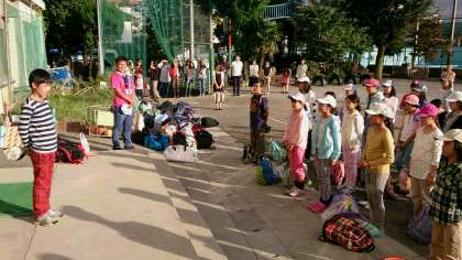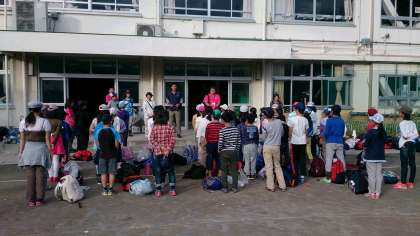 お出迎えの保護者の皆さま、先生方ありがとうございます。予定より早く帰ってきたので、お出迎えに間に合わなかった保護者の方もいたと思います。申し訳ありません。