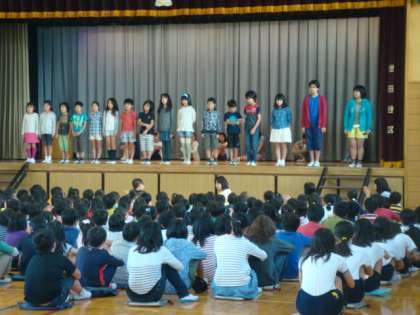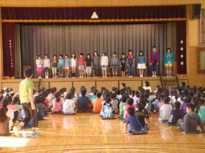 10月9日(金)の児童集会では、各委員会の委員長と代表委員の紹介がありました。