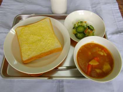 ガーリックトースト 牛乳 ビーンズシチュー