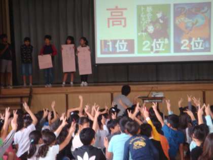 内容は、全校のみんなに好きな本のアンケートをとり、紹介をするというものでした。