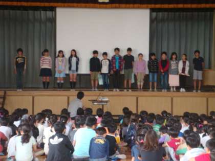 10月30日(金)の朝、図書委員会による発表集会がありました。