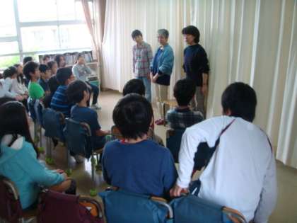 読書ボランティアの方に来ていただき、さまざまな物語をみんなに紹介していただいています。