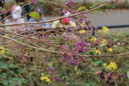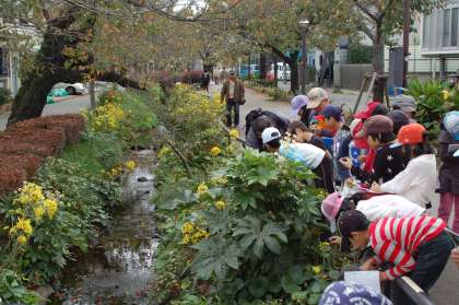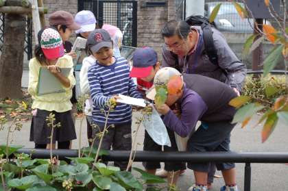 2年生は生活科の学習でせせらぎ見学に行きました。ネイチャーガイドのボランティアの方々が8人も来てくださりました。秋のせせらぎは、ツワブキの黄色い花が今は盛りと咲いていました。ムラサキシキブの実が鮮やかです。赤や黄色に色づいた桜の葉が落ちています。たくさん秋を味わうことができました。メモもしっかり取れました。ガイドの皆さん、ありがとうございました。