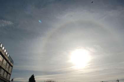 奇しくも、上空には日暈(ハロ)が見えていました。(学校便り参照)