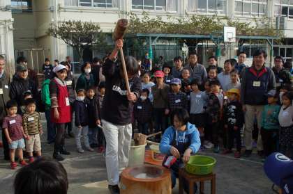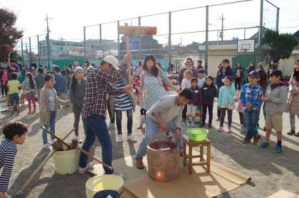 素晴らしい小春日和の下、代沢小学校もちつき大会が行われました。