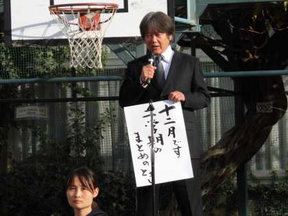 今日の校長先生のお話は「12月です 二学期のまとめのとき」というお話でした。そして『看脚下』のお話もしてくださいました。