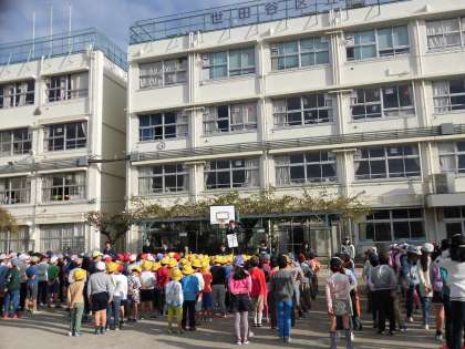 この後、6年生の「連合運動会」の成績発表がありました。世田谷区の64校の中で、たくさんの優秀な成績をおさめたことに、全校児童から大きな拍手があがりました。