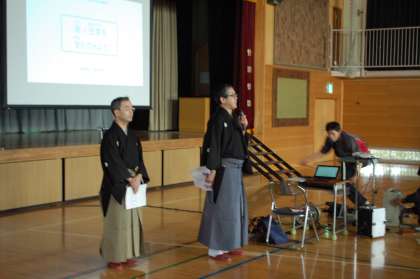12月10日(木)の3,4時間目、文化庁主催の「能体験教室のワークショップ」を行いました。観世九皐会のみなさんにやさしく指導していただきました。