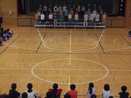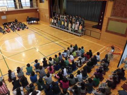 12月11日(金)、音楽朝会がありました。今月の歌は「こどものせかい」でした。