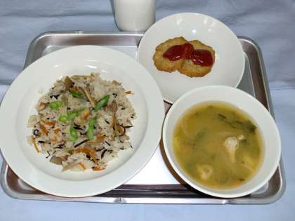 五目ごはん 牛乳 豆腐のナゲット みそ汁