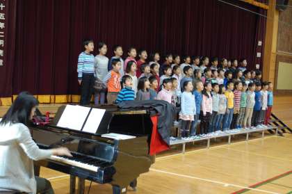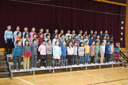 続いて、2年生の合唱の発表。「すずめがサンバ」というリズミカルで愉快な歌です。満点の笑顔で歌ってくれました。