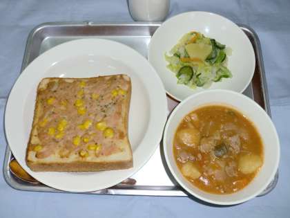 ツナトースト 牛乳 ハンガリアンシチュー