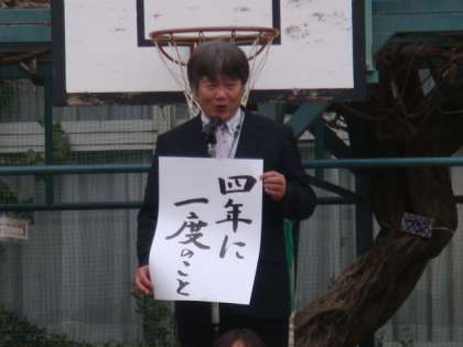 今日の校長先生のお話は「四年に一度のこと」というお話でした。今年は閏年であること。そして4年に一度の夏季オリンピック・パラリンピックがある年であること等のお話でした。