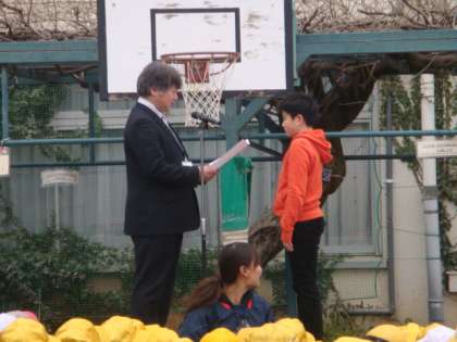 「今年の夏季オリンピック・パラリンピックが開催される場所は、ブラジル・リオデジャネイロ。じゃあ、その4年後の夏季オリンピック・パラリンピックが開催される場所はどこでしょう。」の問いかけに、児童のみんなは「東京−。」っと、元気良く答えることができました。
