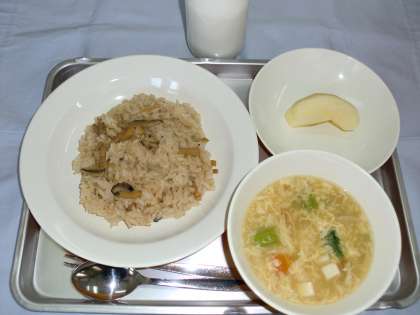 中華おこわ 牛乳 中華風コーンスープ くだもの