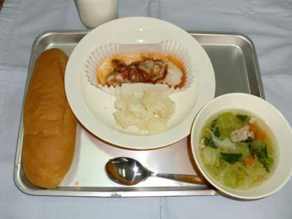 ミルクパン 牛乳 魚のピザ風 粉ふきいも 野菜スープ