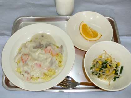 ドリア風 牛乳 ほうれん草サラダ くだもの