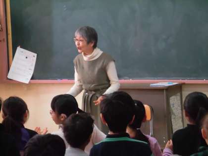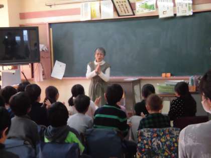 読書ボランティアの方に来ていただき、さまざまな物語をみんなに紹介していただいています。