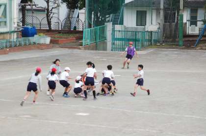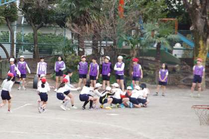「お別れ球技大会」では、5年生が準備、片付け、司会進行を行いました。