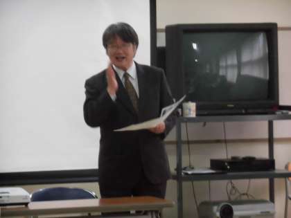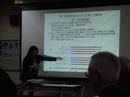 会は、「1.学校長挨拶」「2.学校関係者評価委員会報告」「3.本年度の教育のまとめと来年度の教育について」「4.避難所運営委員会より『今年度の避難所運営訓練と来年度に向けて』」「5.その他」という順に行いました。