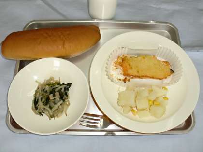 黒砂糖パン 牛乳 鮭のガーリック焼き