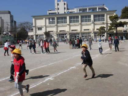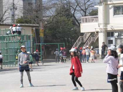 3月3日(木)の休み時間、代沢小学校のみんなは元気いっぱいに外遊びに興じました。