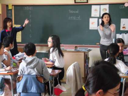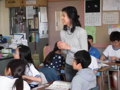 年間35時間実施しています。今回も英語活動支援員の先生と、授業を楽しくすすめることができました。