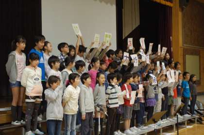 学期当初から実行委員を中心に準備を進めてきた1/2成人式。それぞれのクラスで式の意味を考え、「感謝を伝える」ためにみんなで劇をしたり、詩や歌を歌ったりして想いを伝えました。