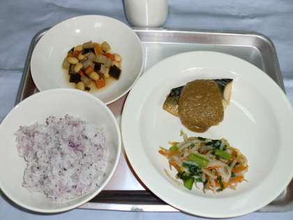 ゆかりごはん 牛乳 魚のごまだれかけ