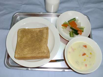 セサミトースト 牛乳 クリームスープ ピクルス