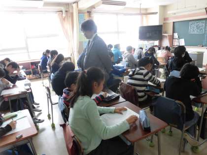 3月16日(水)の2、3時間目、6年1組と2組で校長先生による道徳の授業がありました。内容は「心って何?−マインドマップを書いてみよう−」でした。