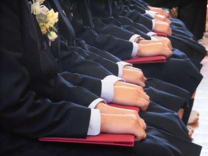 卒業生の立派な態度。思いの詰まった別れの言葉。感動的な歌声。