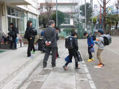 3枚目の写真は、東昇降口での下校指導の様子です。