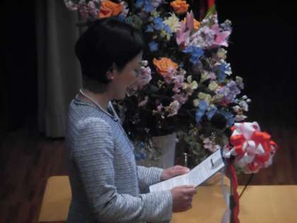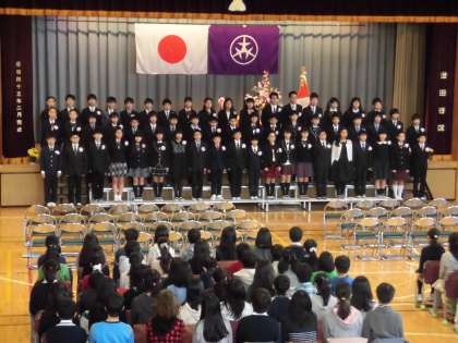 下の写真は『卒業式』での、「富士中校長からの『お祝いの言葉』」「PTA会長からの『お祝いの言葉』」そして「門出の言葉」の様子です。
