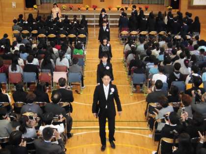 下の写真は「門出の言葉」「校歌斉唱」そして「卒業生退場」の場面です。