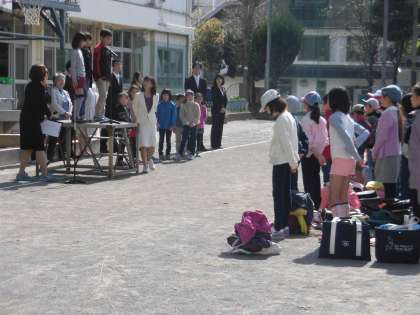 転入児童の紹介の後、児童のみんなは新しい教室にはじめて入りました。