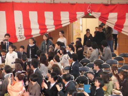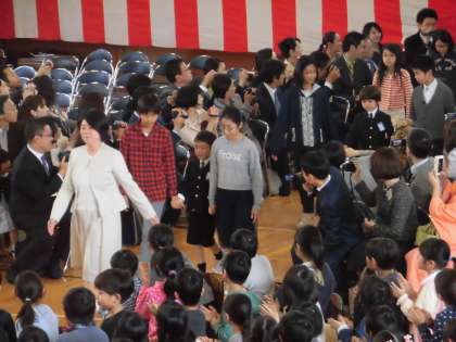 1年生38人を迎えた代沢小学校。1年生のみんなは6年生のお姉さんお兄さんと一緒に、素敵な笑顔で入場してきました。