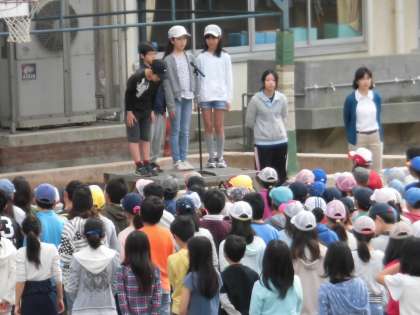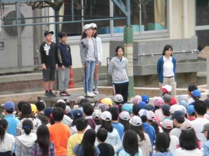 代表委員会から全校児童に『あいさつについての○×クイズ』を発表しました。クイズ形式でしたので全校のみんなは興味深く考え、答えることができました。