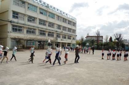 2年生以上の児童のみんなは煙を吸わないようにハンカチ等で口を覆いながら、『お・か・し・も』の約束をしっかりと守り行動することができました。とても真剣に訓練を行い、1年生のみんなに良いお手本をみせることができました。