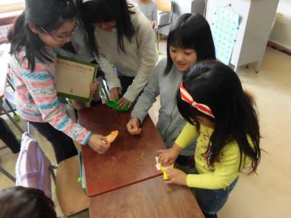 休み時間に廊下を歩いていましたら、1年生の教室内から何やら楽しげな声が聞こえてきました。教室の中をのぞいてみますと、そこには6年生のお姉さんとお兄さんと楽しく過ごしている1年生の姿がありました。