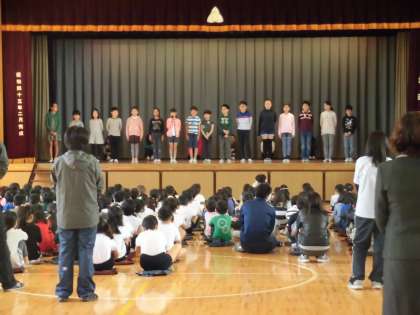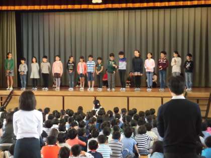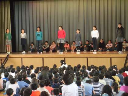 さすが代沢小学校を背負ってたつ代表児童。原稿を持たず、自分の言葉で意欲に満ち溢れた自己紹介を、全校児童の前で堂々と発表することができました。そして、学校を私たちの手でより良くしていこうという気持ちが前面に出ていてとても良い決意表明でした。