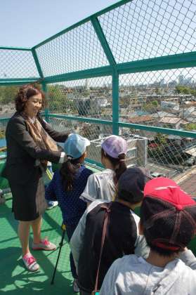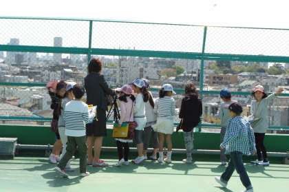 3年「社会『学校のまわりのようす』」〜学校の屋上から学校の周りを見よう〜