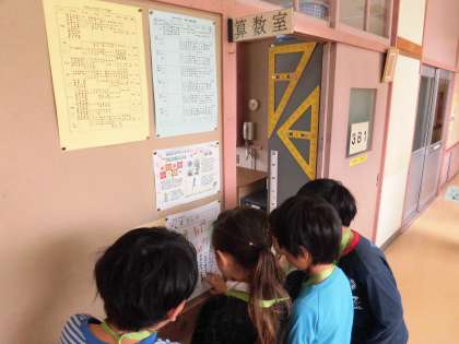 2年生のみんなは1年生に学校中をわかり易く「案内」することができました。