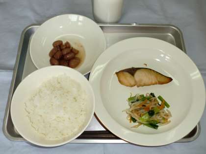 ごはん 牛乳 魚の西京焼き おひたし 煮豆