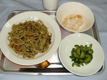 ソース焼きそば 牛乳 きゅうりの中華あじ