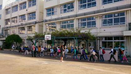 昨日の雨がウソのようです。素晴らしい青空の下、6年鎌倉遠足スタートです。