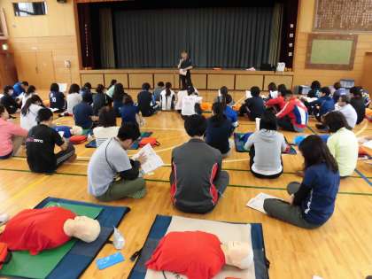 “あなたの大切な人を、そして誰かの大切な人の命を救うために”—。6月中旬から水泳指導も始まります。改めて応急手当の重要性を確認し合うことができました。