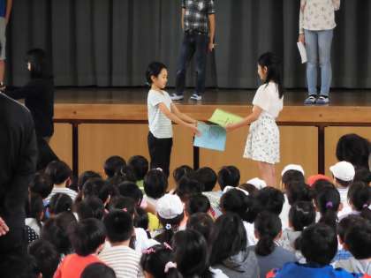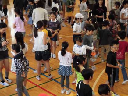 5月6日(金)、児童集会がありました。今回は集会委員会さんによる「名刺交換(めいしこうかん)ジャンケン」でした。